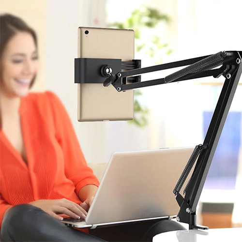 • Aluminium smartphone- en tabletstandaard met verstelbare arm