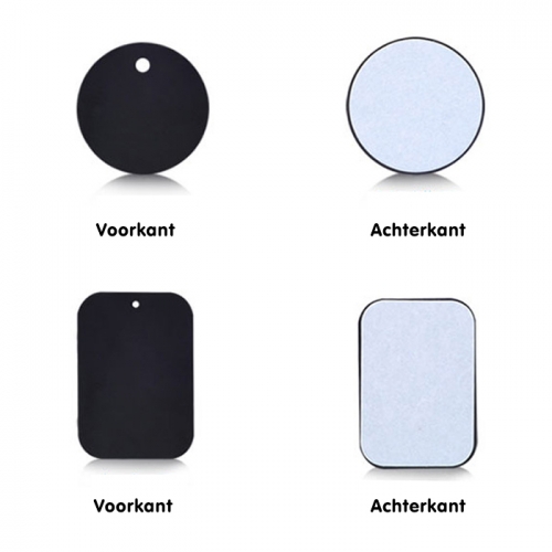 Bevestig dit metalen plaatje op de achterkant van uw telefoon, wanneer u gebruik wilt maken van een magnetische telefoonhouder. U ontvangt een rond en een rechthoekig plaatje. De plaatjes hebben 3M lijm op de achterkant, waarmee het plaatje op uw telefoon of hoesje geplakt kan worden. Deze 3M lijm laat geen resten achter wanneer het plaatje weer wordt verwijderd.