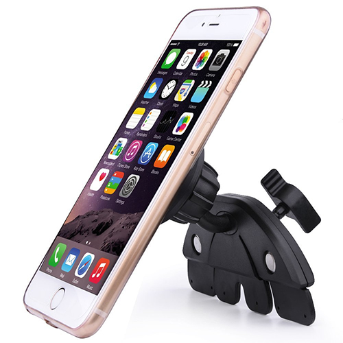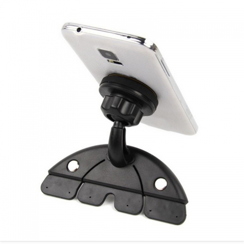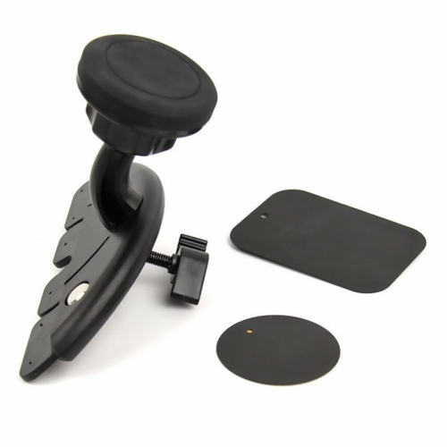 Als u nooit een CD in de CD-speler van uw autoradio heeft, kunt u deze handig gebruiken als telefoonhouder. Deze houder wordt stevig in de CD-speler bevestigd. Bij de telefoonhouder ontvangt u een metalen plaatje. Plak het metalen plaatje op de achterkant van uw telefoon, of stop deze tussen de achterkant van de telefoon en uw beschermhoes. De magnetische hoes houdt nu uw telefoon op zijn plaats.